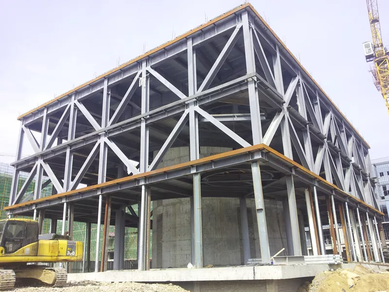 Tá colúin chruach, bíomaí cruach, braces cruach, etc. den chuid is mó, a chuirtear le chéile i struchtúr fráma trí tháthú, naisc bolted, etc.