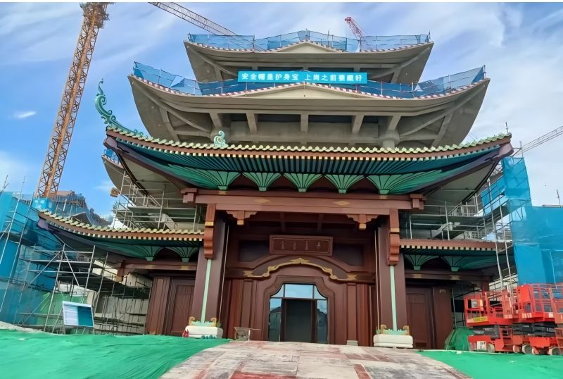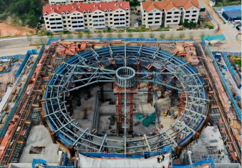 Mar chroí-struchtúr ualachiompartha amharclainne, is é suiteáil an bhíoma truss ciorclach príomhthosaíocht na tógála seo. Tá réimse leathan agus meáchan mór ag an truss seo, le linn an phróisis, bhí dúshláin iomadúla i gceist leis an bpróiseas a shárú, mar shampla oibríochtaí ard-airde agus ailíniú beacht, baineadh úsáid as trealamh ardaithe mór chun cruinneas suite leibhéal milliméadar a chinntiú. Thug an cruinneas seo tacaíocht chobhsaí do struchtúr díon an amharclainne.