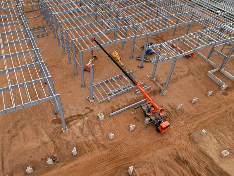 Tá na comhpháirteanna cruach, lena n -áirítear bíomaí, colúin, braces, agus trusanna dín, réamhdhéanta i suíomh monarchan. Úsáidtear cruach ardcháilíochta, agus déantar na comhpháirteanna chun sonraíochtaí beachta a dhéanamh chun a chinntiú go n-oireann siad go cruinn agus go daingean le linn na suiteála. Ceadaíonn an timpeallacht rialaithe seo bearta déine rialaithe cáilíochta, ag cinntiú marthanacht agus iontaofacht na gcomhpháirteanna.