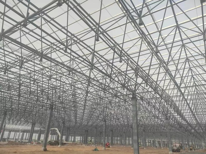 Neart agus Stiffness: Tá an neart agus an stiffness céanna ag frámaí spáis cruach agus is féidir leo fórsaí seachtracha a sheasamh go héifeachtach mar dhomhantarraingt, ualaí gaoithe, agus fórsaí crith talún. Fágann sé seo go bhfuil sé oiriúnach chun tacú le réisí móra spáis.