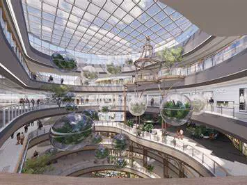 Ionad siopadóireachta asraonta gairdín Fukaya na Seapáine: ina bhfuil struchtúr cruach le dearadh páirteach dhá-scéal, cuireann ballaí seachtracha an fhoirgnimh cuma phléadáilte ar nós Origami, rud a chiallaíonn gur gné shainiúil den ionad siopadóireachta é. Tá a chúirt bia suite ar an dara hurlár, ag tairiscint dhá radharc ar an ionad siopadóireachta agus ar na sléibhte i bhfad i gcéin.