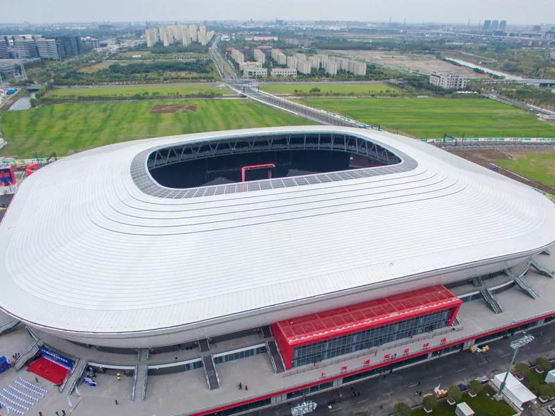 Is iad na príomhábhair a bhaineann le staidiam peile struchtúr cruach ná cruach ard-neart, lena n-áirítear colúin chruach, bíomaí cruach, agus trusanna, i measc príomh-chomhpháirteanna eile. Ní hamháin go bhfuil airíonna meicniúla den scoth ag na steels seo, atá in ann ualaí ollmhóra a sheasamh, ach cuireann siad ar chumas an staidiam dearadh réise mór a bhaint amach, ag cruthú spás oscailte gan bacainní colúin agus ag soláthar taithí féachana níos fearr don lucht féachana.