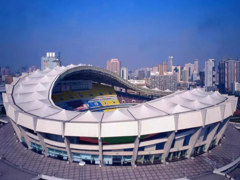 1. Baineann staidiam peile an struchtúir chruach úsáid as cruach ard-neart mar an príomhábhar, ina bhfuil meáchan éadrom, feidhmíocht fhriotaíochta seismeach agus gaoithe den scoth.
