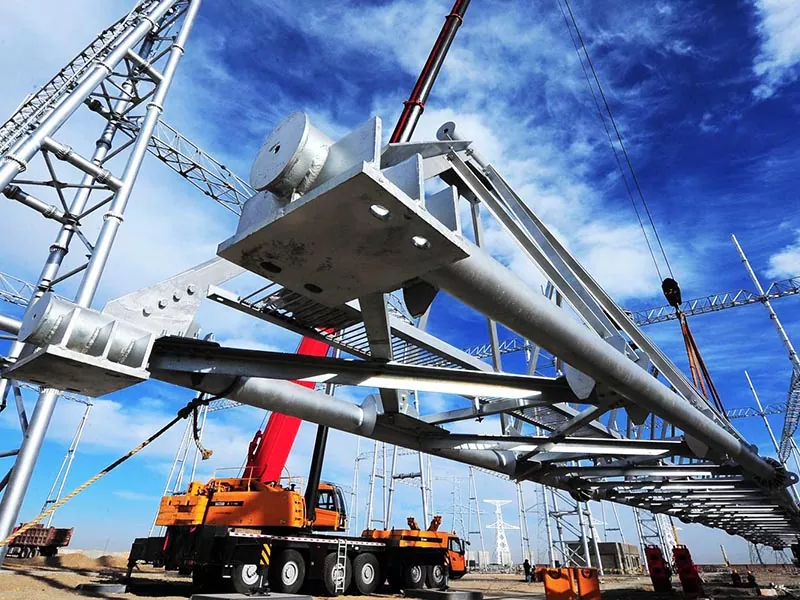 ● Tógáil: Déantar baill agus comhpháirteanna cruach a thógáil agus a chur le chéile ar an láthair, ag baint úsáide as craenacha agus trealamh trom eile.